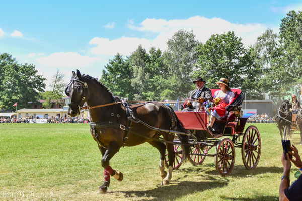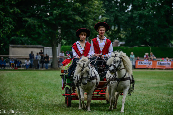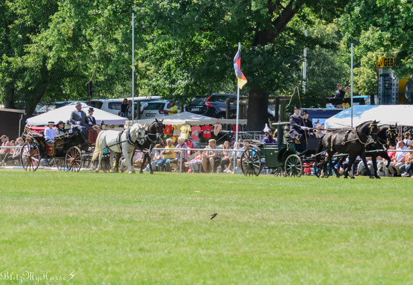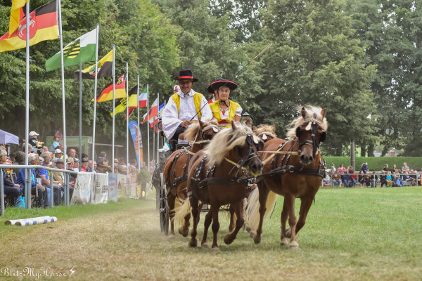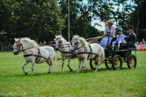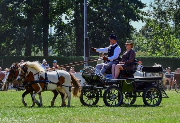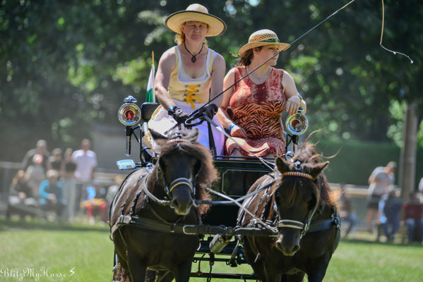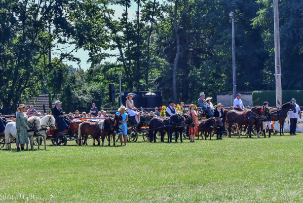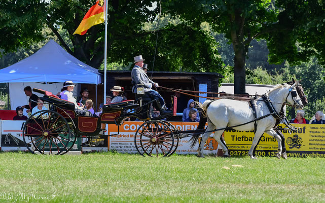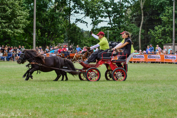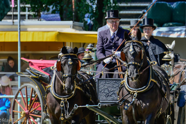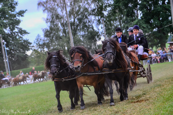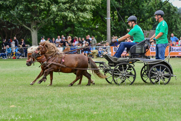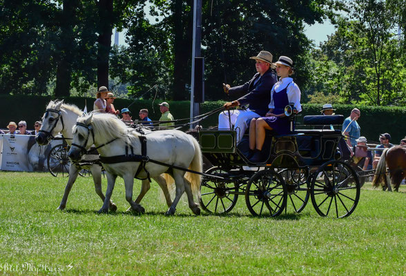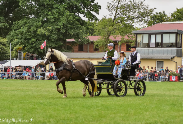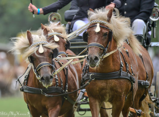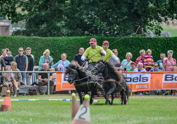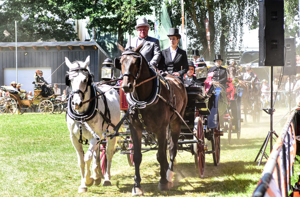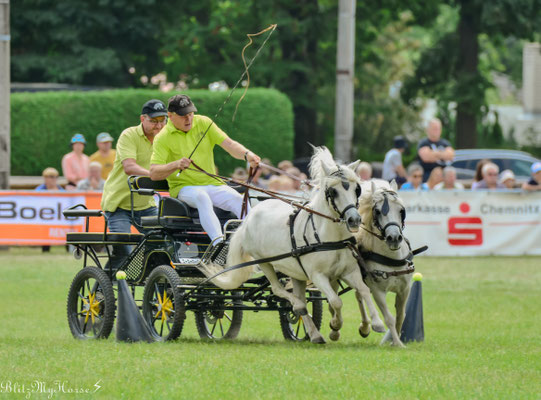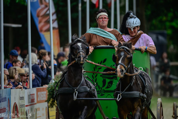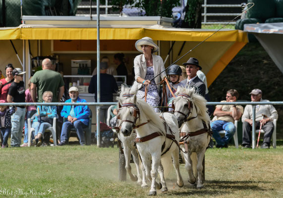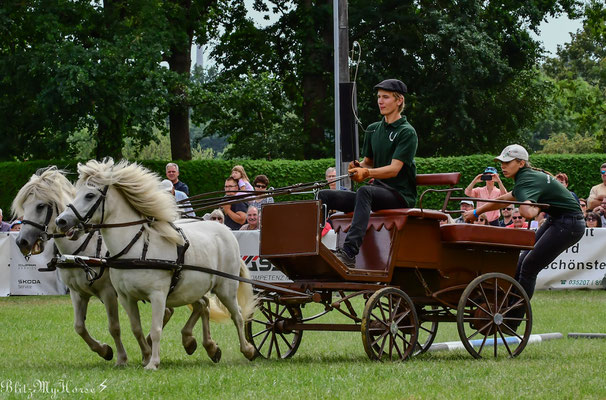 Die Einmarschparade mit ihren zahlreichen Ponygespannen und Kinderreitern eröffnete traditionell unsere Ponyschau. Es folgten weitere Programmnummern mit gefahrenen und gerittenen Quadrillen, rasanten Römer- und Streitwagen, süßen Fohlen, geschickten Reitern und imposanten Mehrspännern. Es wechselten sich traditionelle Programmnummern wie die Sulkyquadrille mit neuen Highlights wie den Ungarischen Impressionen mit rasanten Fünferzügen und der Ungarischen Post ab. Klarer Höhepunkt unserer Veranstaltung war die einwandfrei gefahrene Postkusche mit 16 Schimmeln vor dem Wagen.