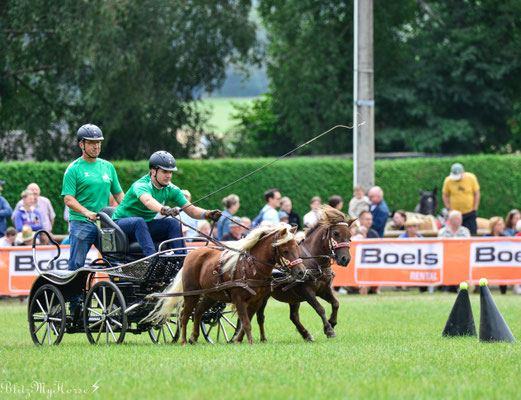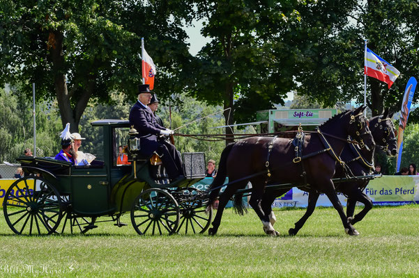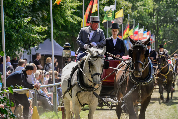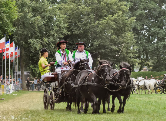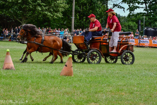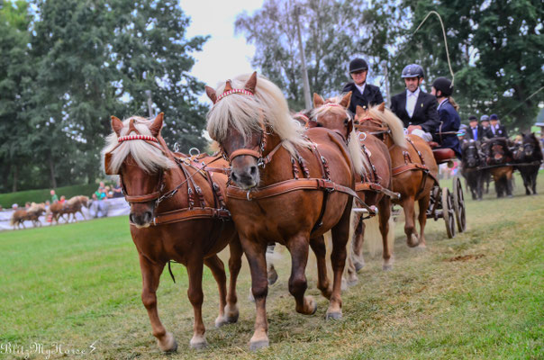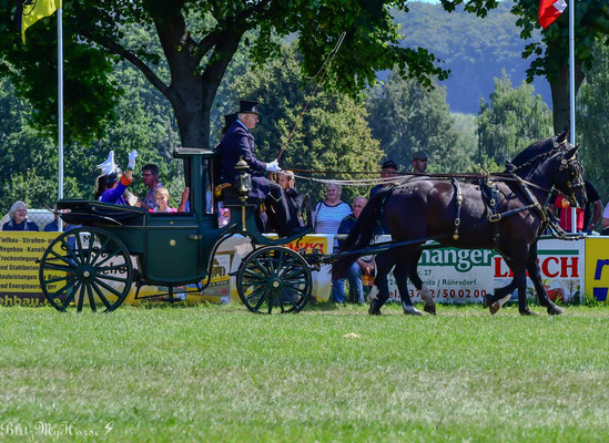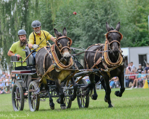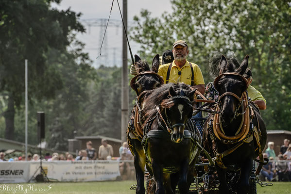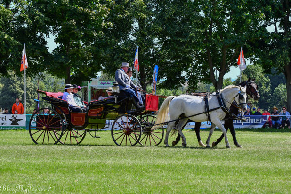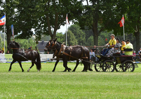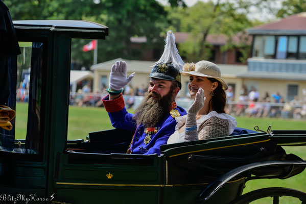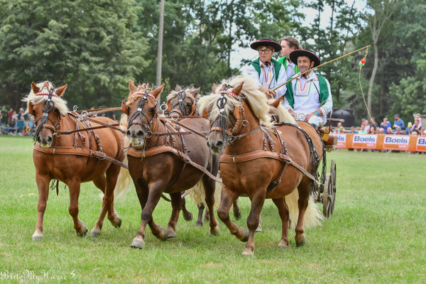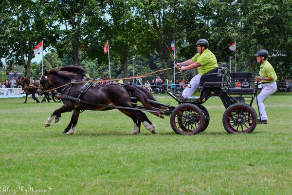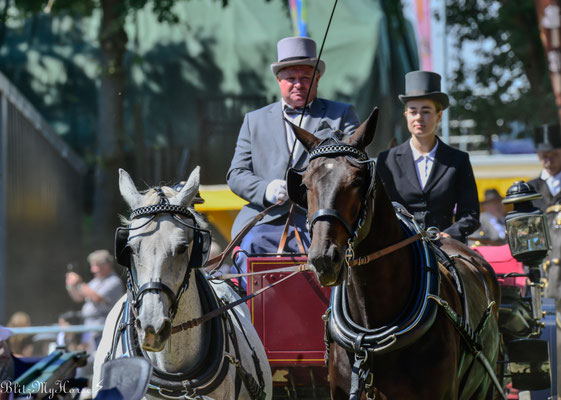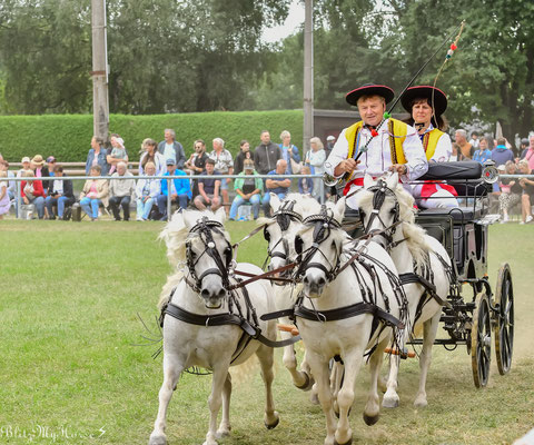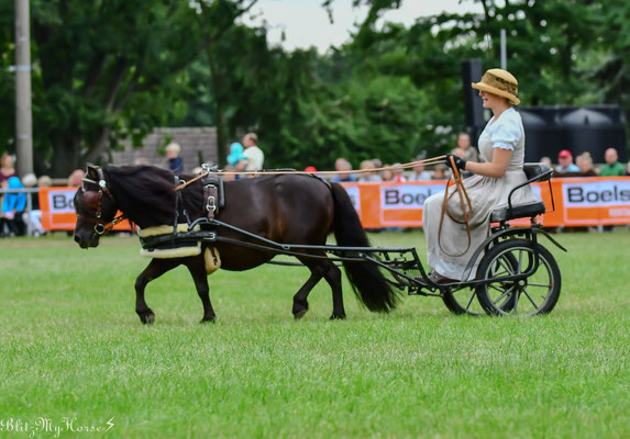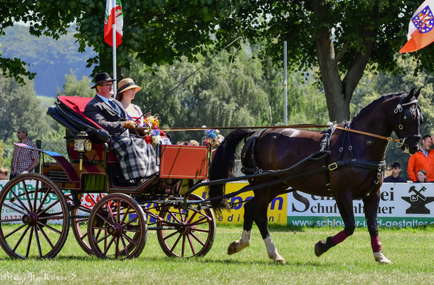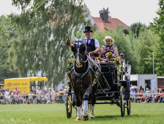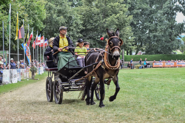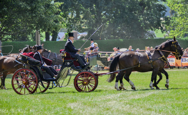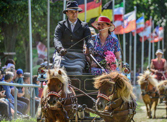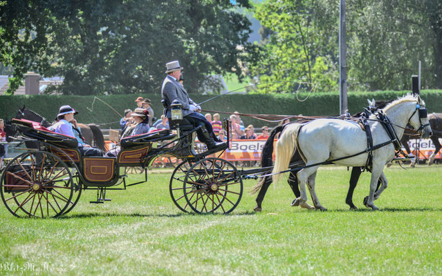 Die Einmarschparade mit ihren zahlreichen Ponygespannen und Kinderreitern eröffnete traditionell unsere Ponyschau. Es folgten weitere Programmnummern mit gefahrenen und gerittenen Quadrillen, rasanten Römer- und Streitwagen, süßen Fohlen, geschickten Reitern und imposanten Mehrspännern. Es wechselten sich traditionelle Programmnummern wie die Sulkyquadrille mit neuen Highlights wie den Ungarischen Impressionen mit rasanten Fünferzügen und der Ungarischen Post ab. Klarer Höhepunkt unserer Veranstaltung war die einwandfrei gefahrene Postkusche mit 16 Schimmeln vor dem Wagen.