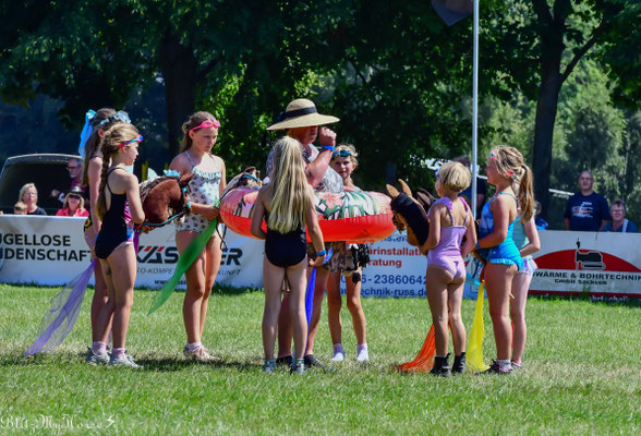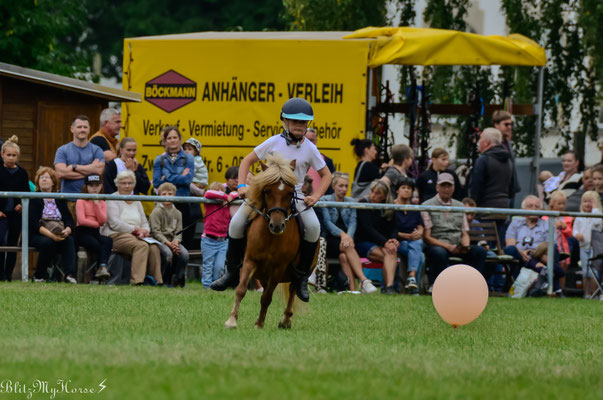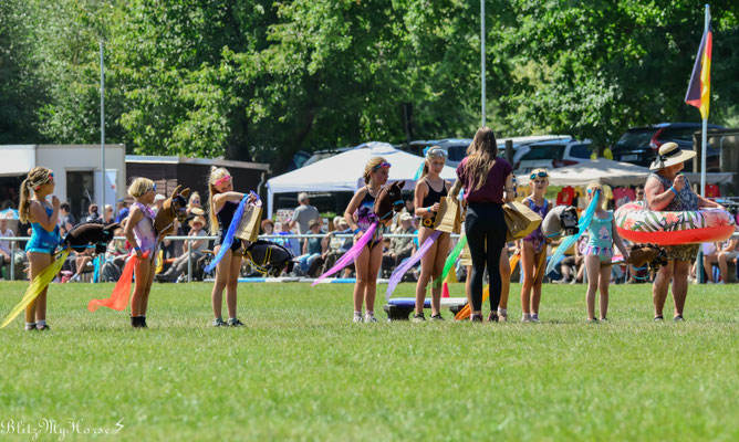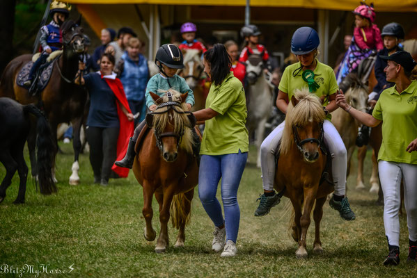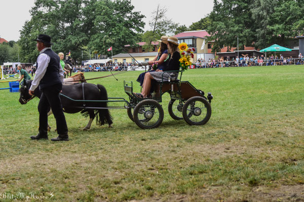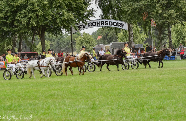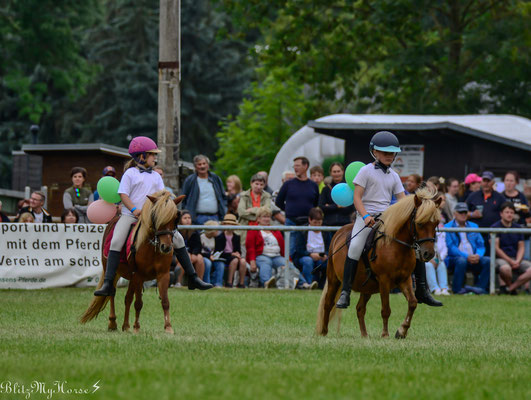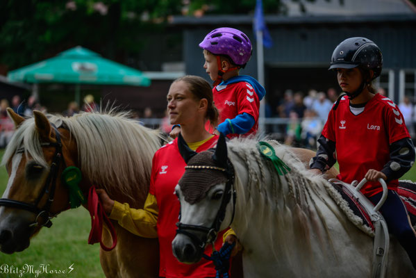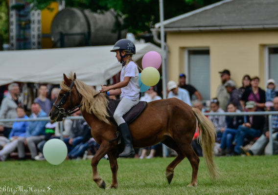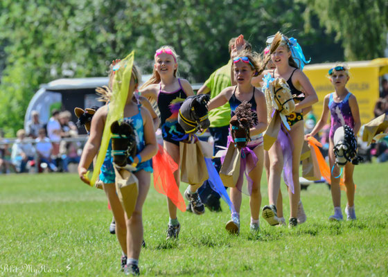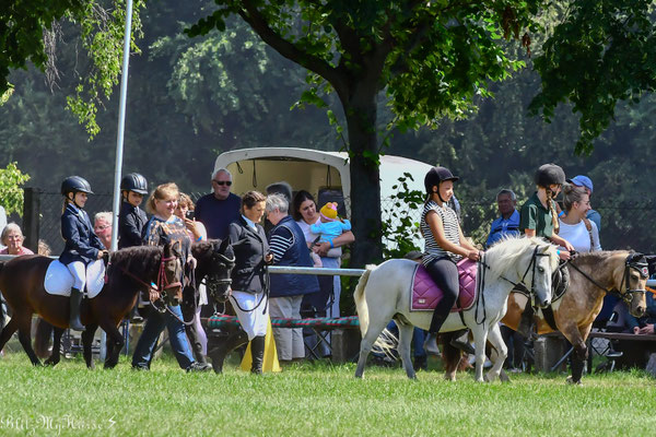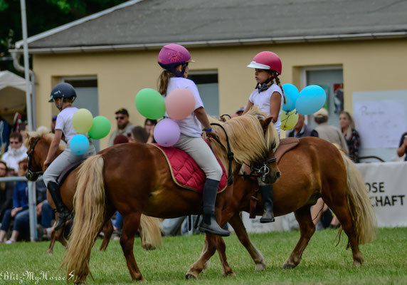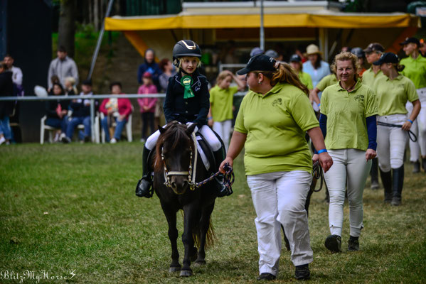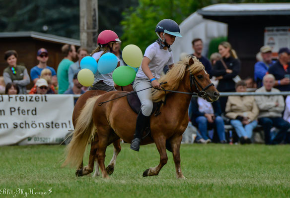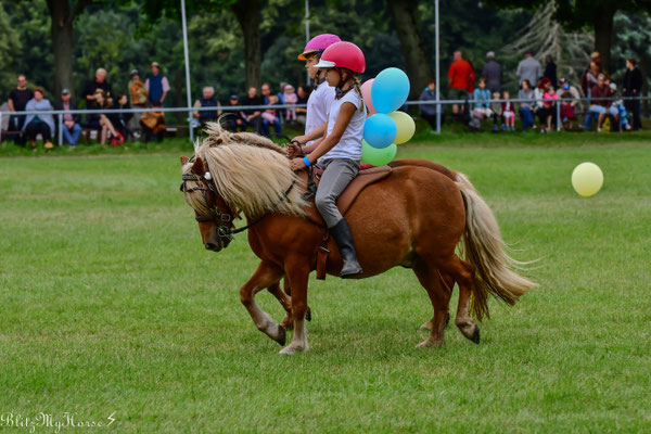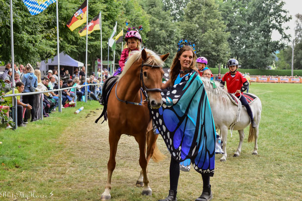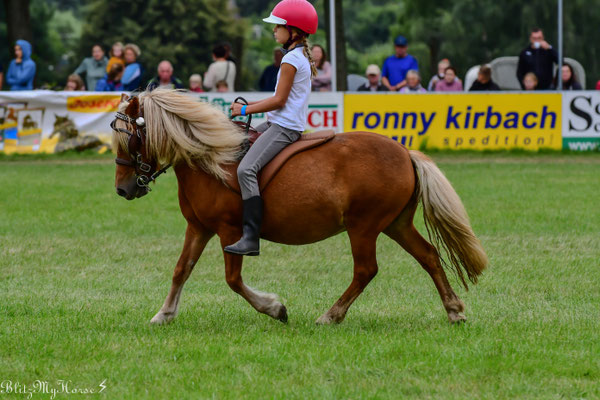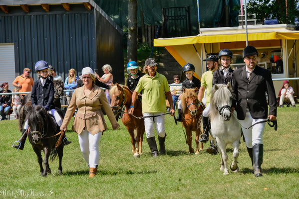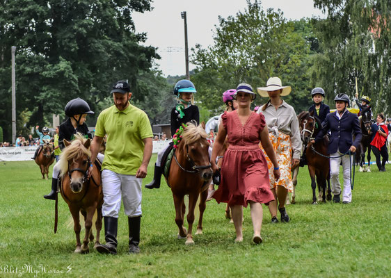 Ein letzter nervöser Blick auf die Uhr, dann ging es los. Es war der 3. Sonntag im August und war 13 Uhr. Die Musik erklang, unser Sprecher gab das Startsignal und die kleinen Ponybeine setzten sich in Bewegung. Nun hatte das Warten ein Ende. Keine Hitze, kein Regen, doch die Sonne schien für uns.