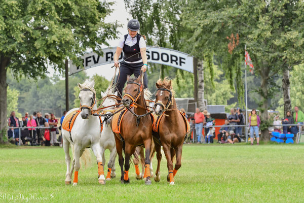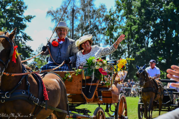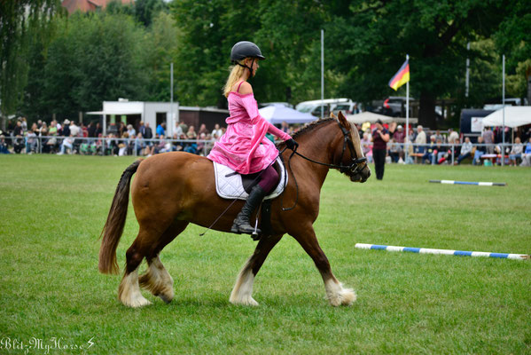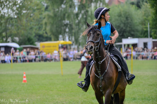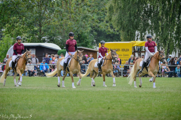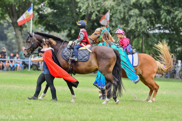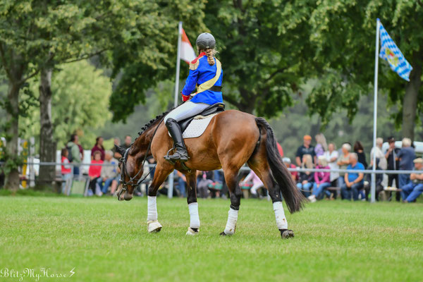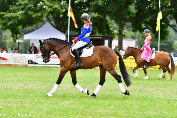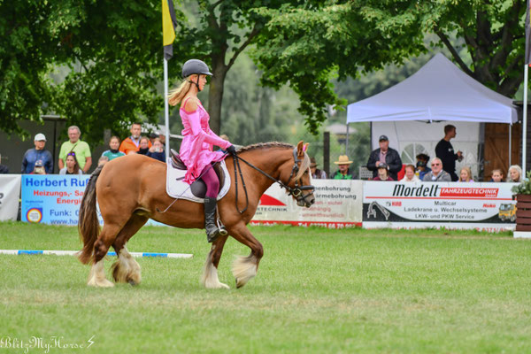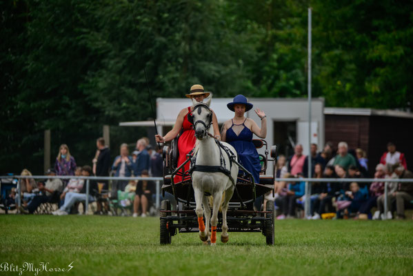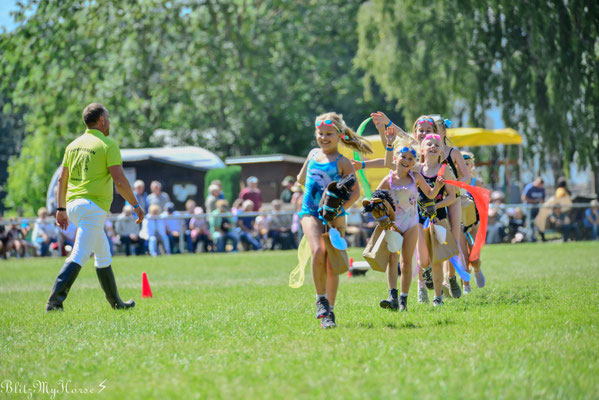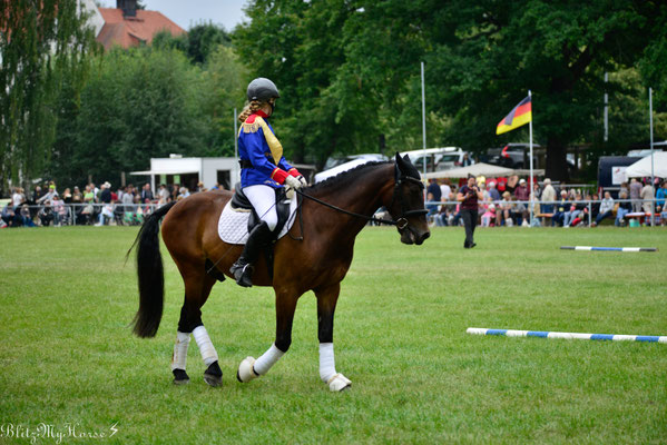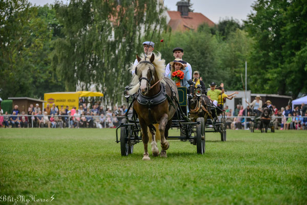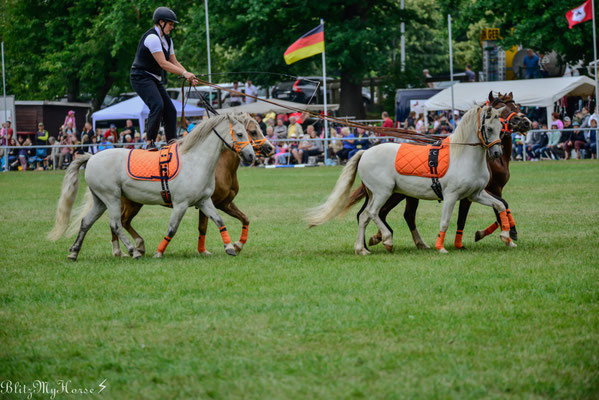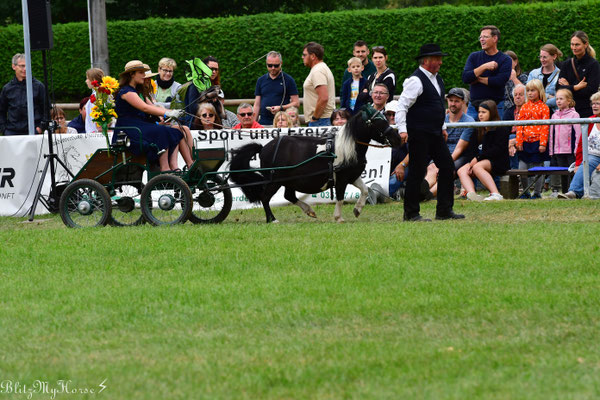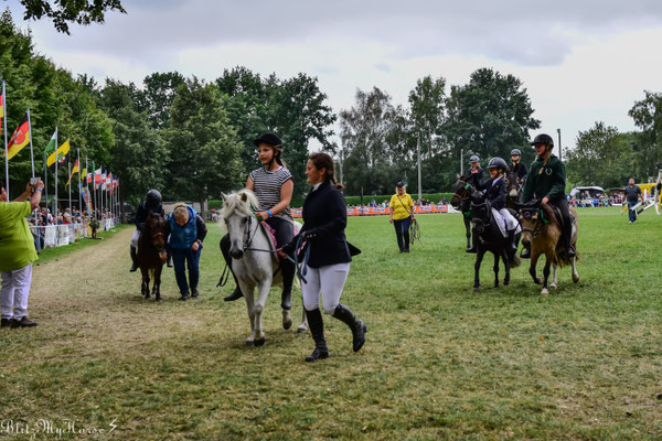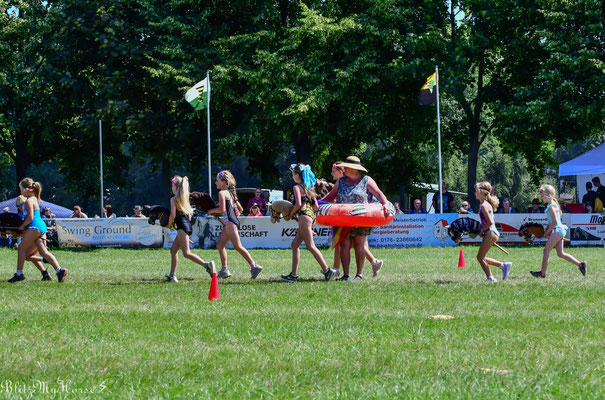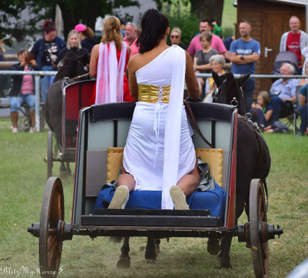 Ein letzter nervöser Blick auf die Uhr, dann ging es los. Es war der 3. Sonntag im August und war 13 Uhr. Die Musik erklang, unser Sprecher gab das Startsignal und die kleinen Ponybeine setzten sich in Bewegung. Nun hatte das Warten ein Ende. Keine Hitze, kein Regen, doch die Sonne schien für uns.